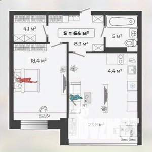 ![Комната в 2-к квартире, на длительный срок, 18м2, 4/5 этаж]()